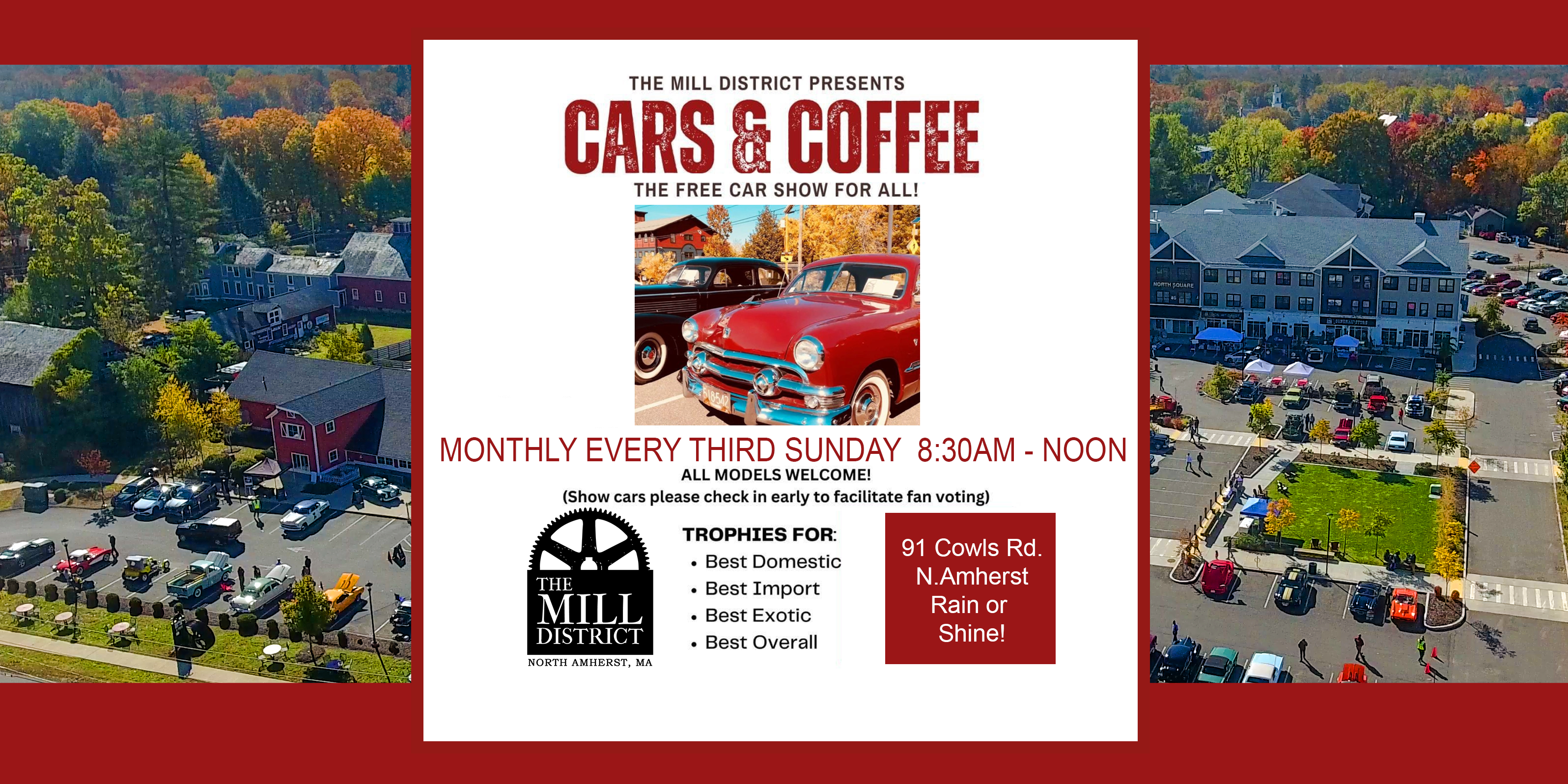 CAR OWNERS: There is no fee to exhibit your car, and pre-registration is NOT required. Aim to arrive by 8:30am for best parking spots. We’ll have our trophy ceremony at 11:45am and the show wraps up at 12 noon sharp.